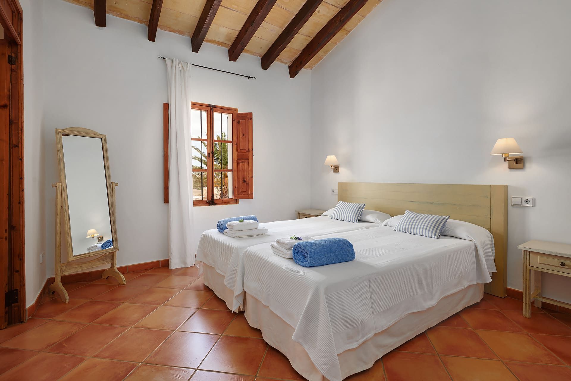 Unsere Finca ist ein zweistöckiges Gebäude mit verschiedenen Anbaubereichen. Alle Zimmer haben Klimaanlage. Das Haupthaus hat zwei große, voll ausgestattete Küchen und ein großes Esszimmer mit einem großen Esstisch. Die Zimmer im Haupthaus haben jeweils ein eigenes Bad/WC. Jedes Apartment im Anbaubereich hat eine eigene Küche, ein Wohnzimmer, Schlafzimmer und ein Bad mit Dusche/WC. Sowohl das Haupthaus als auch die Apartments sind sehr geschmackvoll und harmonisch eingerichtet, was den Aufenthalt noch gemütlicher macht. Unser Gelände hat für 18 Personen Platz und bietet Schlafzimmer mit großen Doppelbetten (180x200cm) oder teilweise auch mit 2 Einzelbetten (90x200cm). Eine Waschmaschine steht im Haupthaus für uns bereit.