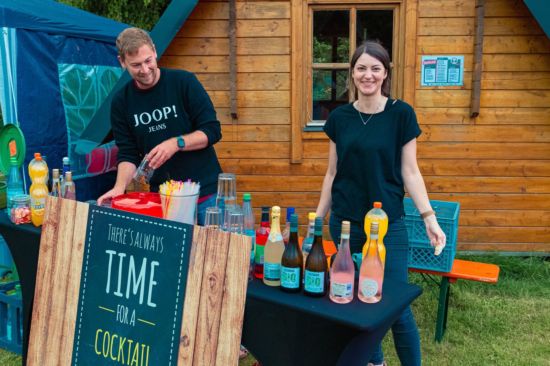 Das Herzstück des Camps war die Aktivfläche zwischen den Hütten und der Bühne. Hier haben wir bei Sonne geschwitzt und bei kurzzeitigem Regen dem Wasser getrotzt.